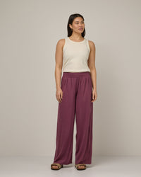 Des rues de la ville aux escapades balnéaires, ce pantalon palazzo fluide est le compagnon de voyage idéal : facile à emporter, confortable à porter et naturellement chic. Il se marie parfaitement avec le cardigan châle Lisbon.